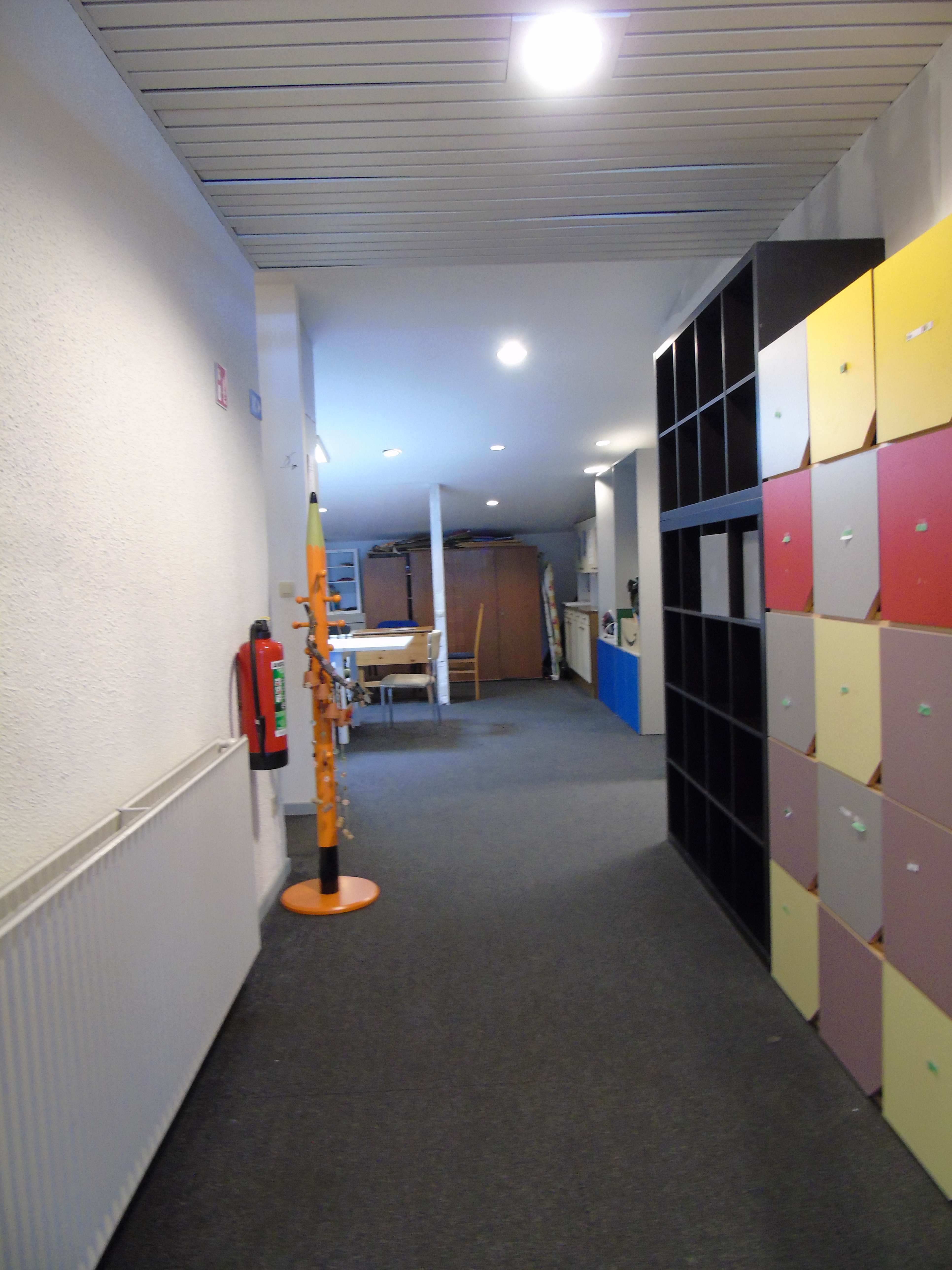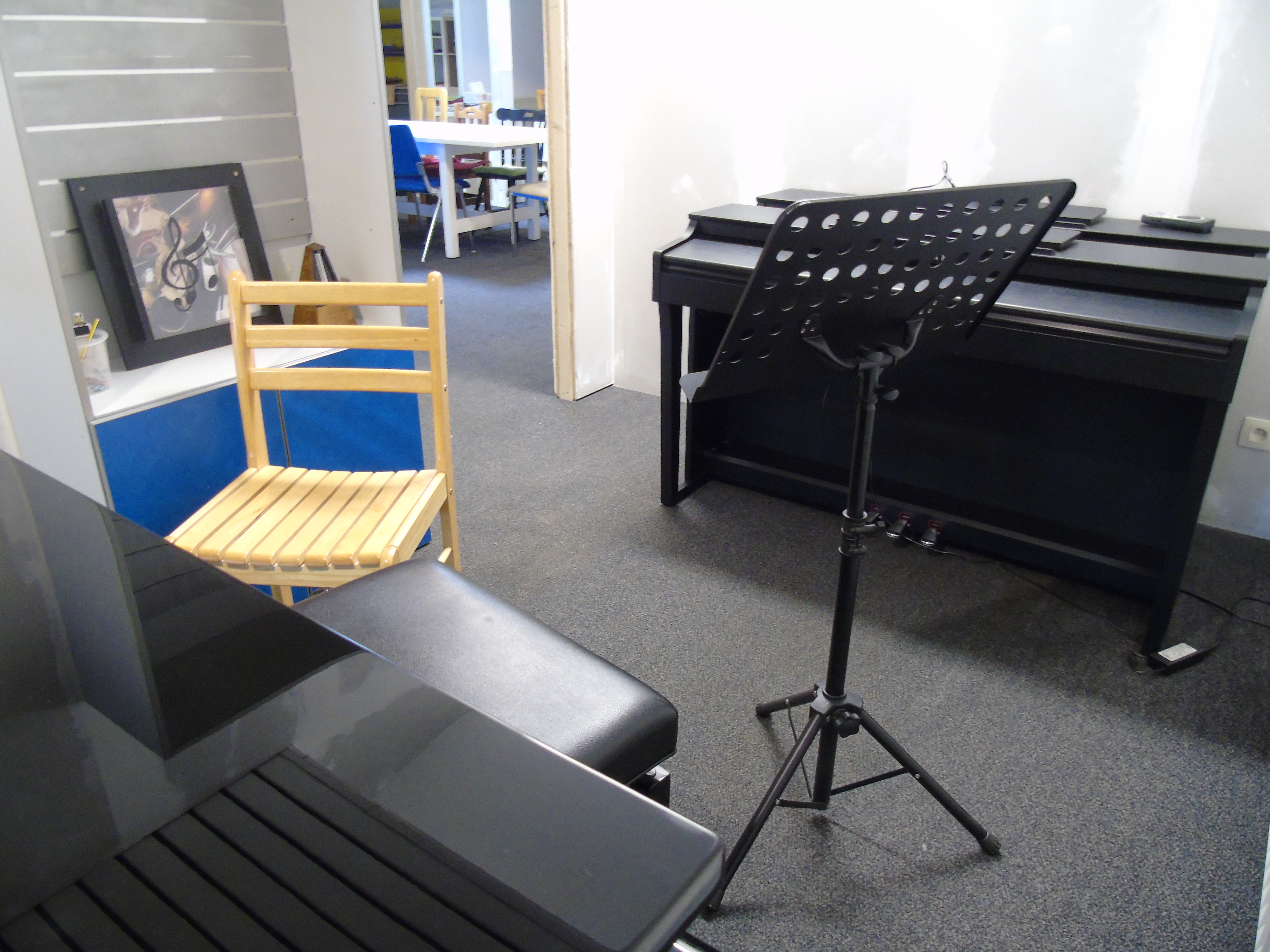 Les 4 locaux suivants, situés en haut, sont accessibles en empruntant les escaliers derrière la porte juste avant celles en verres des locaux de couture, de dessin, de piano et du secrétariat.