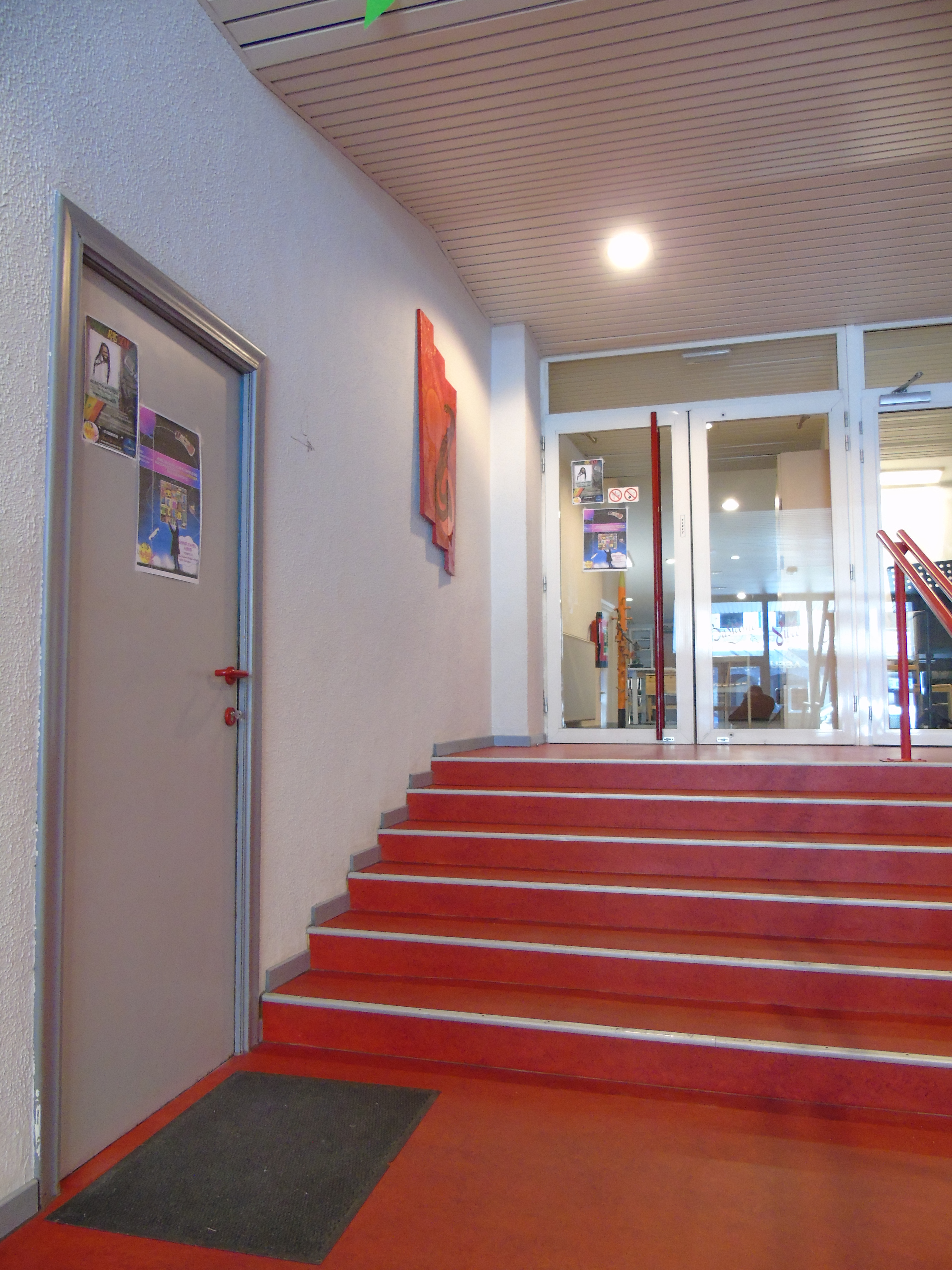 - Tous nos locaux sont accessibles en montant les marches. Rassurez-vous, chaque endroit est renseigné par une petite affiche. Si vous ne trouviez pas, n’hésitez pas à demander à nos professeurs en frappant délicatement à leur porte ou contactez la direction au 0477/605.928.