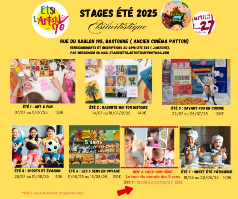 Pour plus d’information -> Rue du Sablon, 195 Bastogne ( ancien cinéma PATTON) Inscriptions au 0498/2720524 (J.Merche) ou par messenger ou par mail etsilartistique@hotmail.com