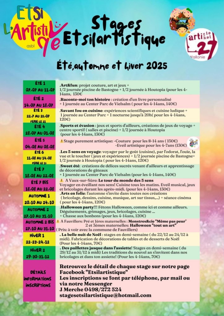 Au plaisir de vous voir ces prochaines vacances pour faire vivre l’Art ensemble.